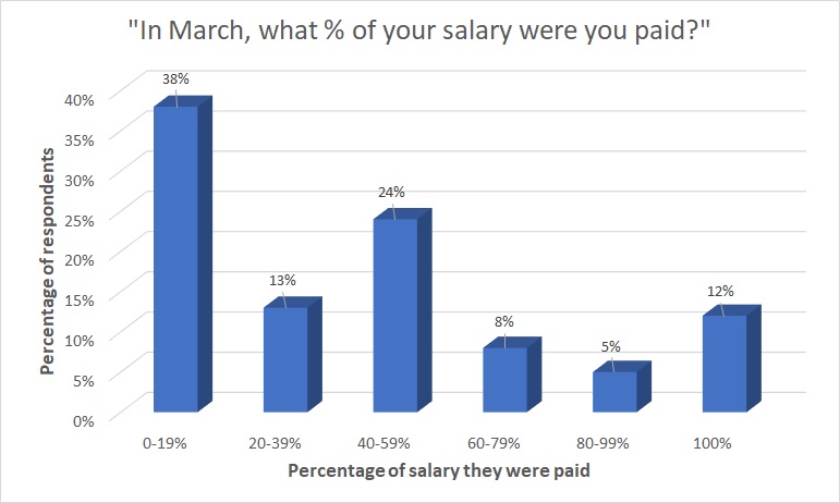 At the other end of the scale, only 12% reported getting their full salary, down from 13% in February and 14% in January.
