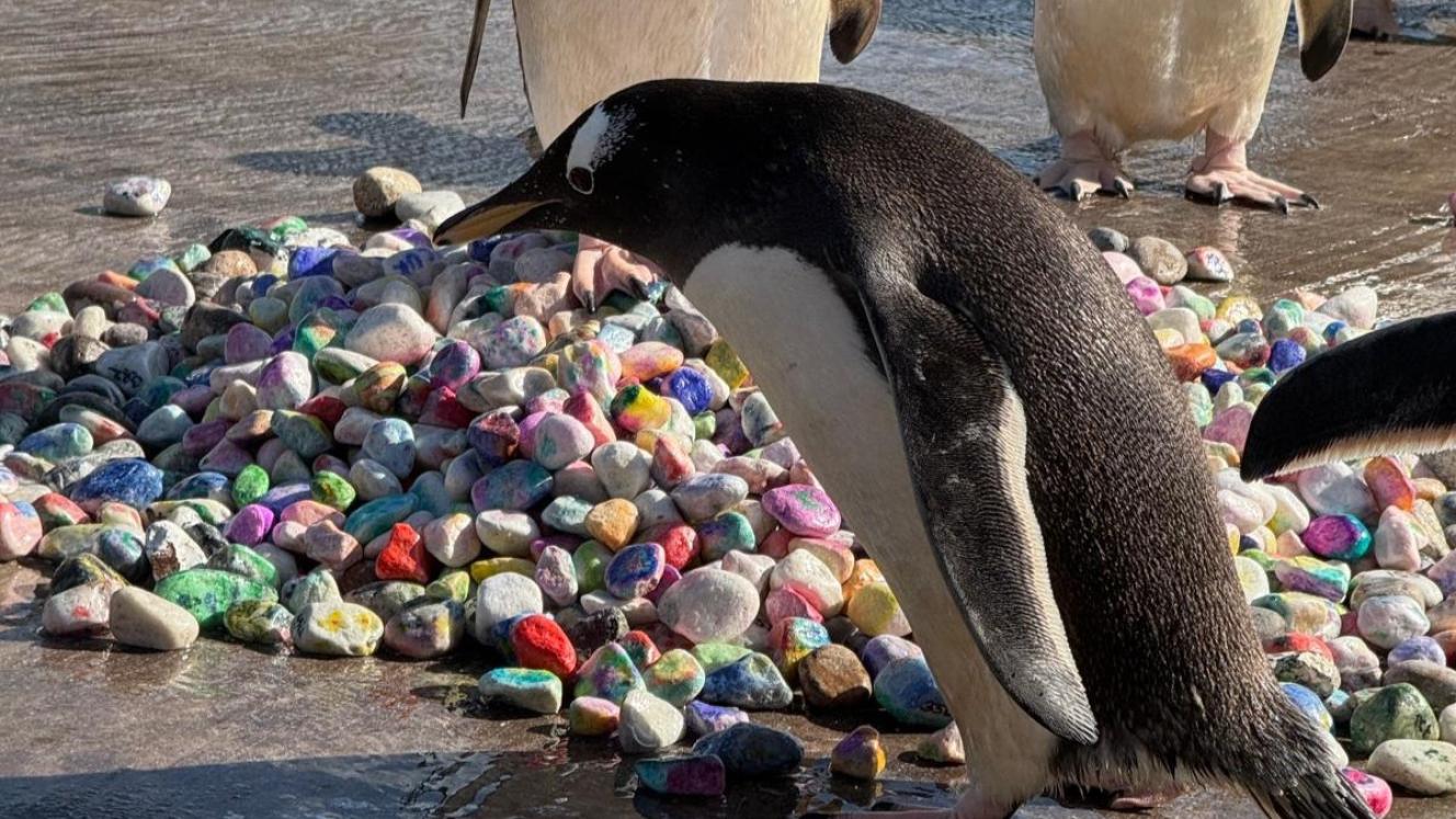 The Royal Zoological Society of Scotland partnered with the Edinburgh Children’s Hospital Charity to offer Edinburgh Zoo’s penguins a selection of hand-painted pebbles for their mating and breeding season.