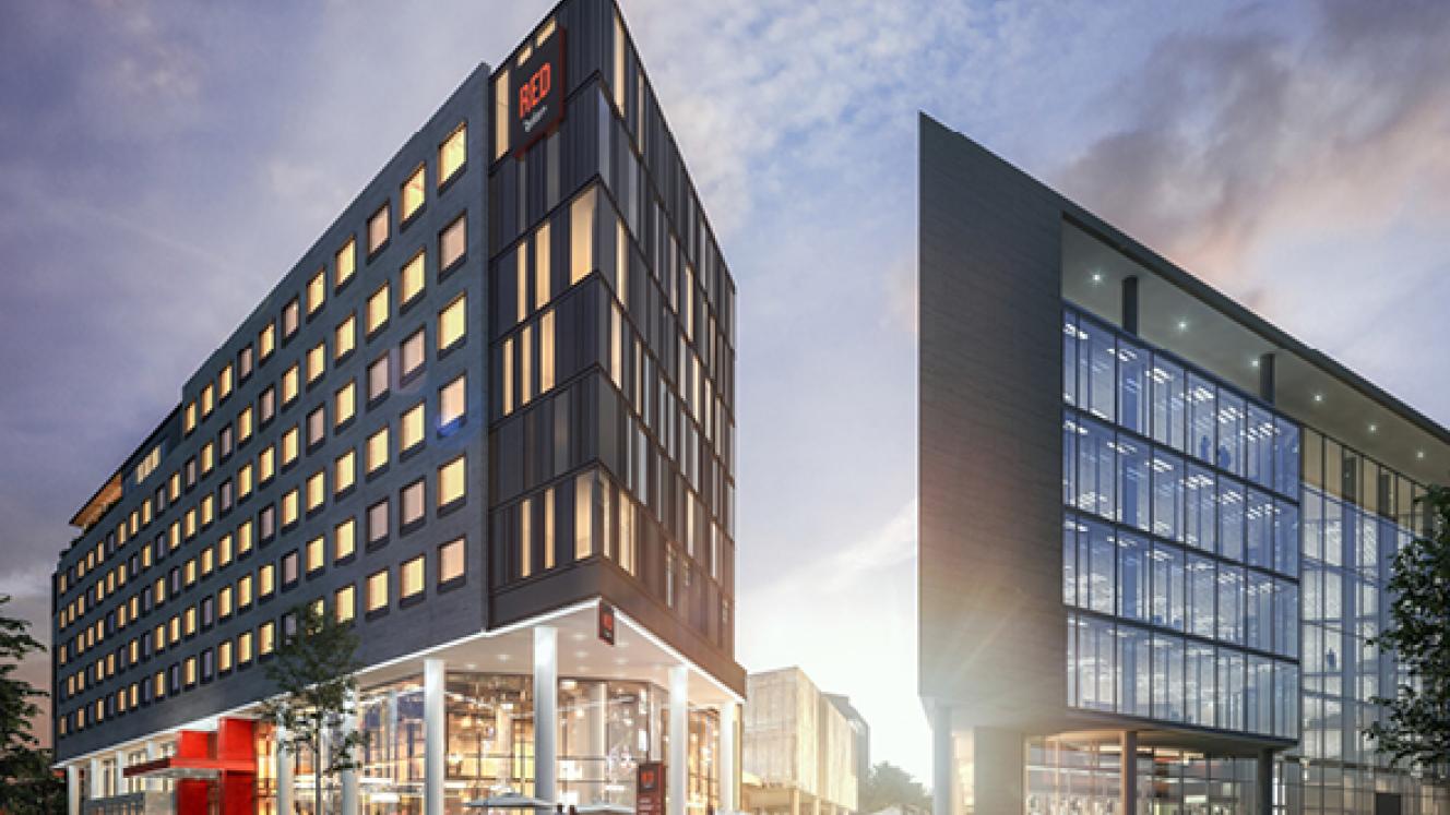 The new-build, 222-room hotel will comprise standard studios and suites in bold designs. The hotel will feature the Radisson RED food and beverage concepts, such as the ‘all day dining’ OUIBar + KTCHN.