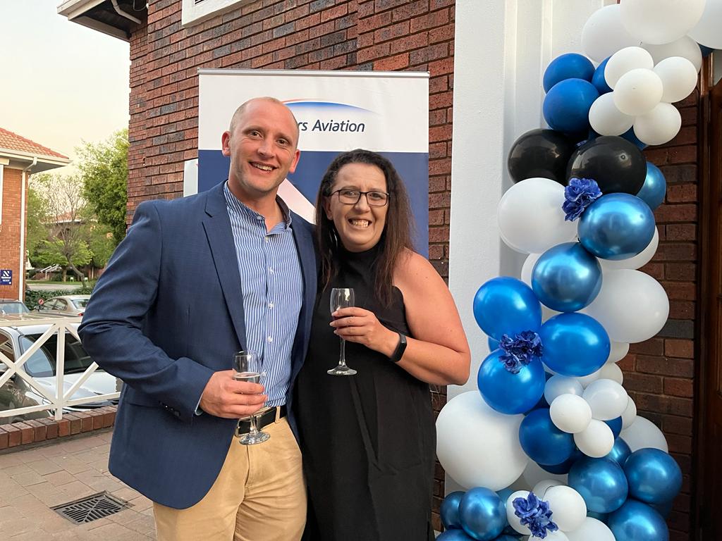 GSA & Sales Manager at Rogers Aviation, Susana Ribeiro, and Operations Manager at Rogers Aviation, Benjamin Combrink at the event.Lu Dowell of Lu Dowell Representations (who was the owner of Border Air which became Rogers Aviation SA), with Yvonne Skerritt, Sales and Marketing Manger of TAAG in South Africa.