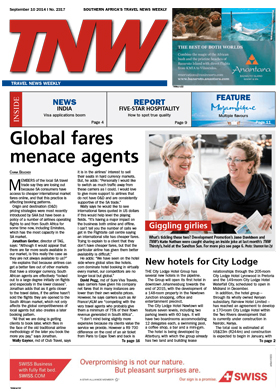 10 Sep 2014 View PDF Fastjet new rout and new hub 5 Oct 2016 Fraudsters targets corporate agents 5 Oct 2016 Photocap: Insurance is easy! 5 Oct 2016 Appointments 5 Oct 2016 Photocap: Happy Birthday 5 Oct 2016 Abu Dhabi to Phuket - coming soon 5 Oct 2016 Feature: Mozambique 5 Oct 2016 From Louis the lawyer-POPI 5 Oct 2016 G adventures now priced in rands 5 Oct 2016 NDC begins to take shape 5 Oct 2016 How to determine true five-star status 5 Oct 2016 Qantas -huge loss but future promising 5 Oct 2016 Photcap: Red hot! 5 Oct 2016 Photocap: Driving in style 5 Oct 2016 Kenyan hoteliers bypass travel warnings 5 Oct 2016 Pillow talk 5 Oct 2016 Crystal launches excursions for latte risers 28 Sep 2016 More time in Thailand for SA travellers 28 Sep 2016 New procedures for travel to Ebola- Affected areas 28 Sep 2016 Air Heads 28 Sep 2016 Multi-entry visa t boots cruising in the Gulf 28 Sep 2016 Visa applications to India boom 28 Sep 2016 Volcanic ash- are your travellers convered? 28 Sep 2016 Photocap: Ebola daily 28 Sep 2016 New hotels for City lodge 28 Sep 2016 Photcap: Giggling girlies 28 Sep 2016 Global fares menace agents 28 Sep 2016