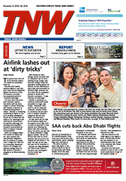 11 Nov 2015 View PDF Air China arrives! 11 Nov 2015 To the point 11 Nov 2015 Photocap: Which way? Segway! 11 Nov 2015 COMMUNITY NEWS 11 Nov 2015 Feature: Victoria Falls 11 Nov 2015 Tnw's Thirsty's 11 Nov 2015 REPORT KWAZULU NATAL COAST 11 Nov 2015 GTASA broadens horizons 11 Nov 2015 Birchwood expands new product 11 Nov 2015 Photocap: Mango gets moving! 11 Nov 2015 Mozambique to build international hubs 11 Nov 2015 Photocap: Hello Namibia! 11 Nov 2015 Fraud allegations force grounding of flyafrica Zim 11 Nov 2015 Photocap: Cheers! 11 Nov 2015 Airlink lashes out at ‘dirty tricks’ 11 Nov 2015