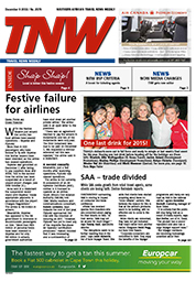 9 Dec 2015 View PDF Big changes for Wendy Wu in SA 9 Dec 2015 New editor for TNW 9 Dec 2015 Appointments 9 Dec 2015 Photocap: And the winner is… 9 Dec 2015 Photocap: Turkish Delight! 9 Dec 2015 TNW's Thirstys 9 Dec 2015 New BSP criteria to boost centralised ticketing business 9 Dec 2015 More countries dropped from yellow fever list 9 Dec 2015 SQ honours top agents 9 Dec 2015 AirHeads: A snapshot of the week's airline news 9 Dec 2015 To the point 9 Dec 2015 Marriott rolls out Rewards across Protea portfolio 9 Dec 2015 Gold Reef City unveils first phase of major refurb 9 Dec 2015 New management for Mossel Bay resort 9 Dec 2015 Cape Town revamps Muizenberg’s historic mile 9 Dec 2015 New boutique Garden Route tour. 9 Dec 2015 Local is lekker this festive season 9 Dec 2015 Lufthansa launches group booking tool for agents 9 Dec 2015 Ethiopian has big plans for Durban 9 Dec 2015 Top web stories 9 Dec 2015 SAA – trade divided. 9 Dec 2015 Photocap: One last drink for 2015! 9 Dec 2015 Festive failure for airlines 9 Dec 2015
